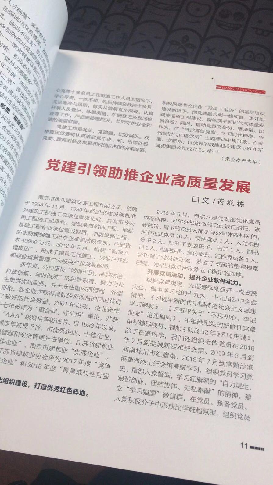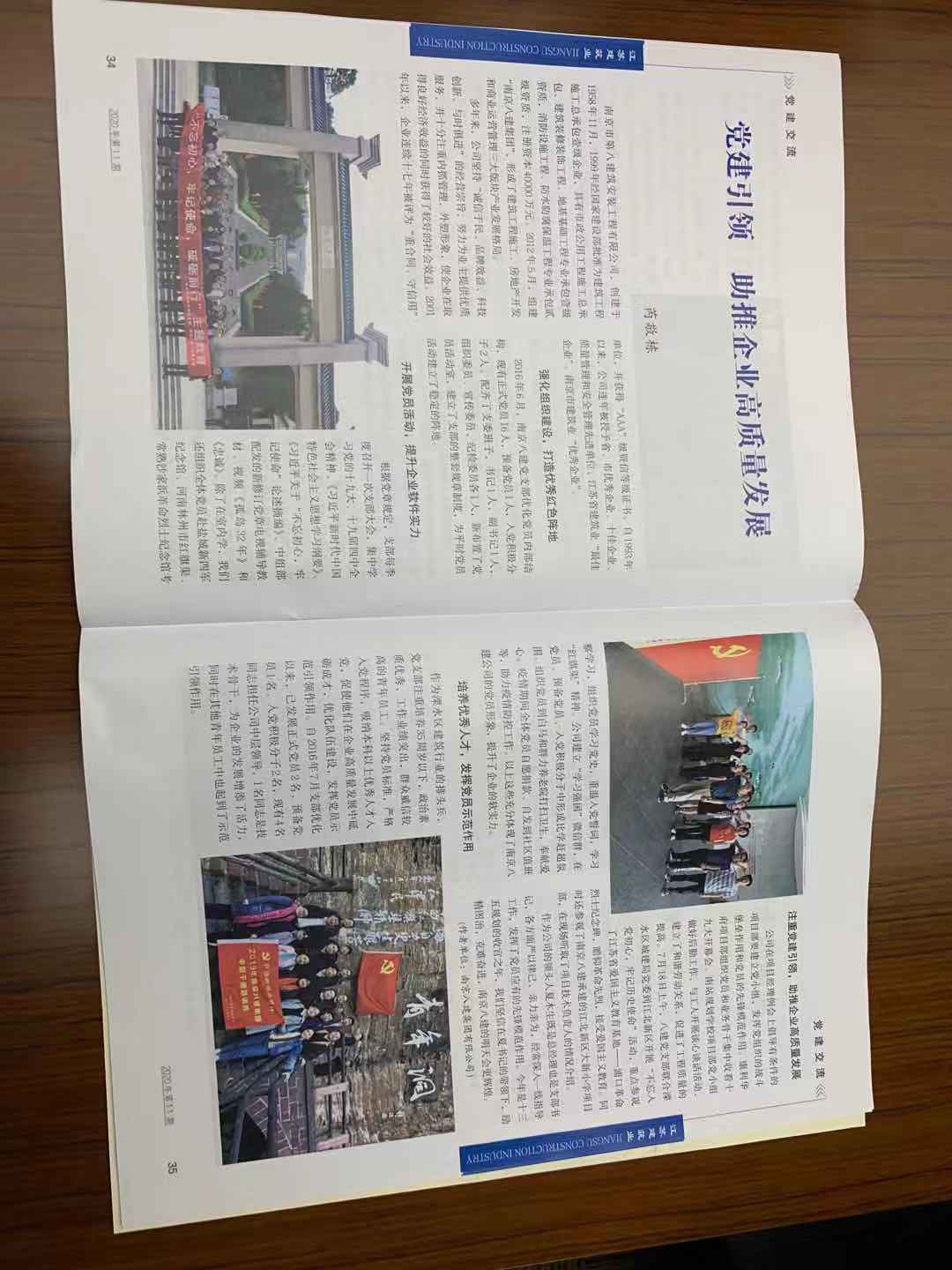 2024年9月,南京建筑業(yè)協(xié)會主辦的《南京建筑業(yè)》(第105期)刊登了芮敬棟同志《深化黨紀(jì)學(xué)習(xí) 筑牢紀(jì)律防線——南京八建黨支部黨紀(jì)教育活動紀(jì)實》一文
