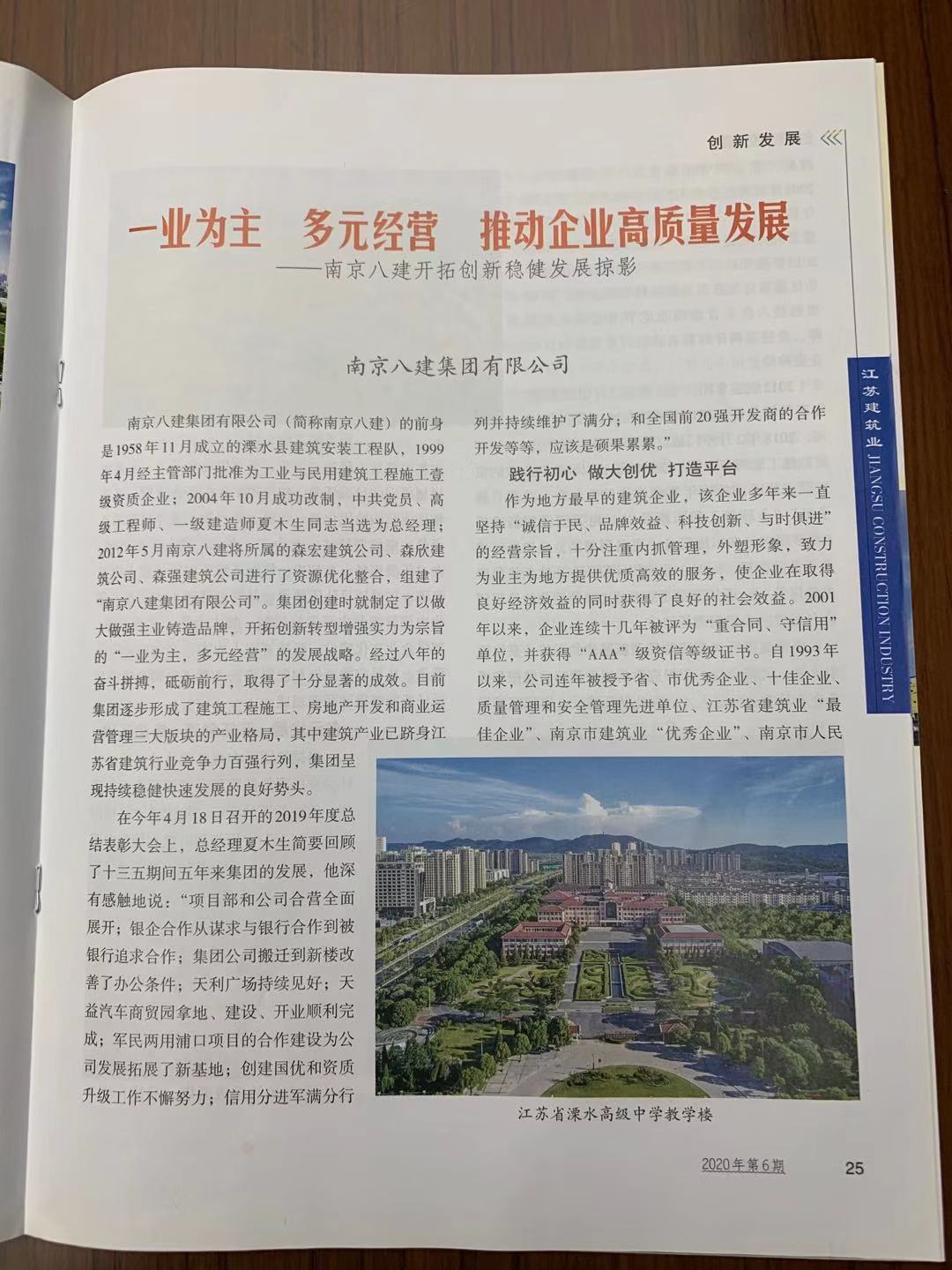 《一業(yè)為主 多元經(jīng)營 推動企業(yè)高質(zhì)量發(fā)展》發(fā)表在2020年6月《江蘇建筑業(yè)》雜志上。