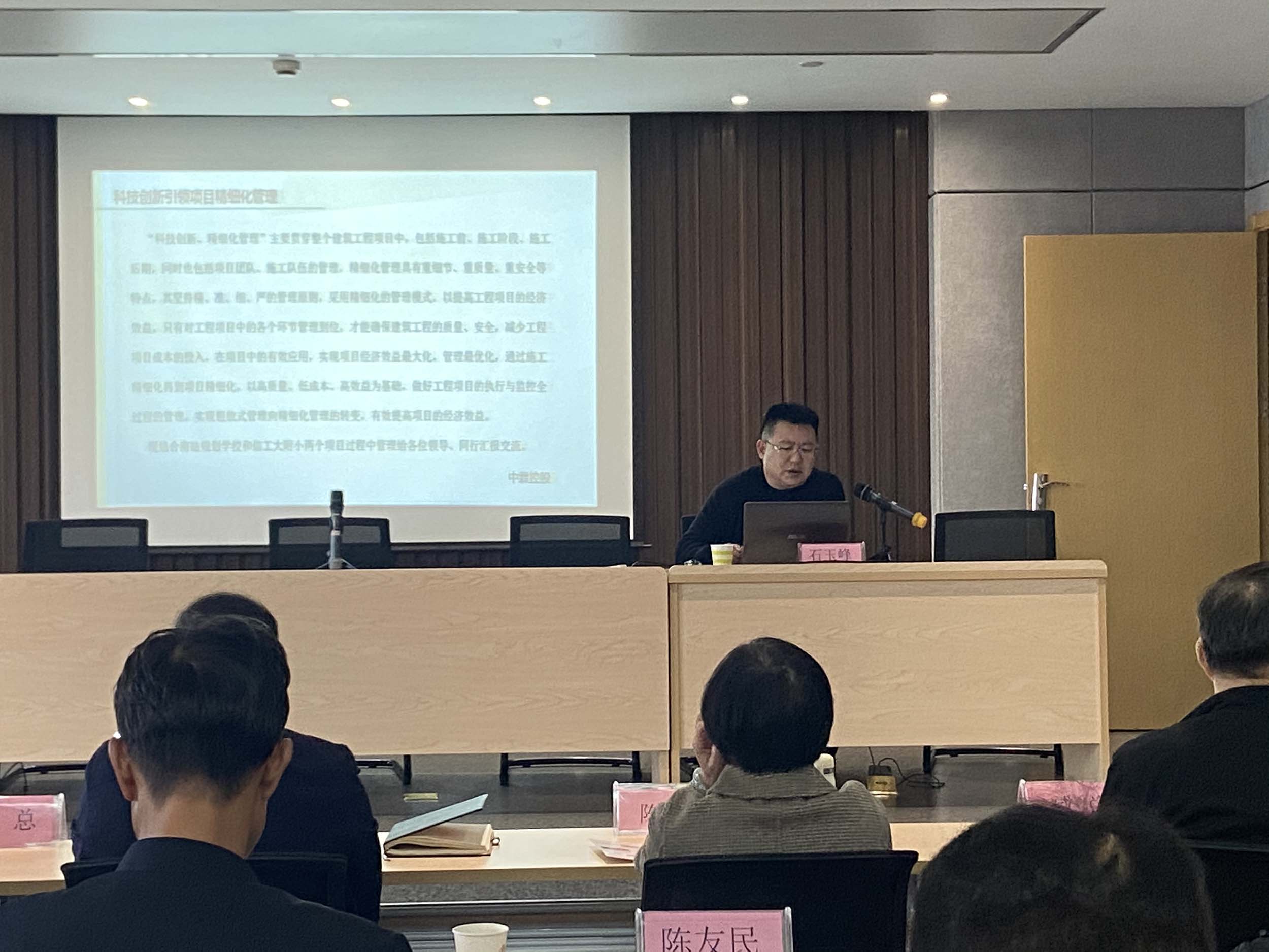 2022年11月19日,八建首屆論壇,項目部經(jīng)理石玉峰作《科技創(chuàng)新引領(lǐng)項目精細(xì)化管理》工作交流匯報和經(jīng)驗介紹
