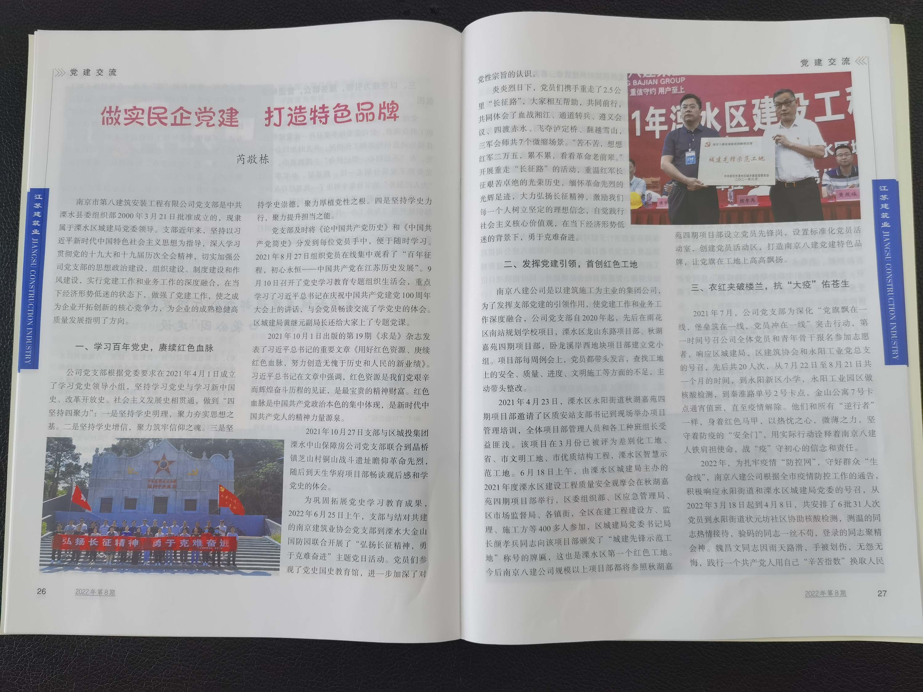 2022年8月《江蘇建筑業(yè)》刊登了芮敬棟同志所寫《做實民企黨建,打造特色品牌》文章