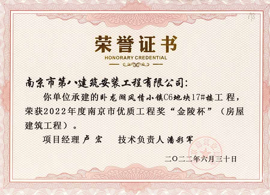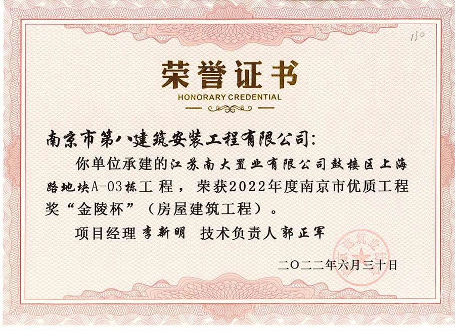 6月30日,南京建協(xié)下發(fā)了(2022)24號文件《關(guān)于公布2022年南京市優(yōu)質(zhì)工程獎“金陵杯”(房屋建筑類、軌道交通工程)項目名單的通知》,決定授予“幸莊人才公寓”等208個項目為2022年南京市優(yōu)質(zhì)工程獎“金陵杯”,我公司承建的13個項目榮獲榮譽(yù)。